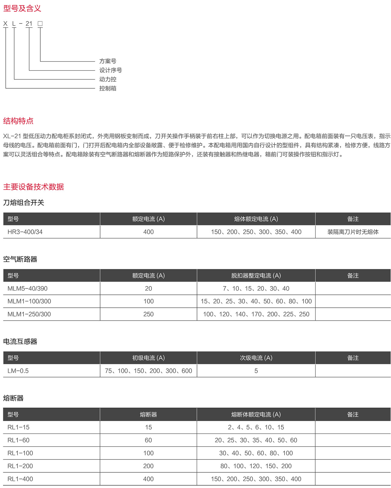 XL-21型低压动力配电箱系户内装置墙安装,屏前检修。