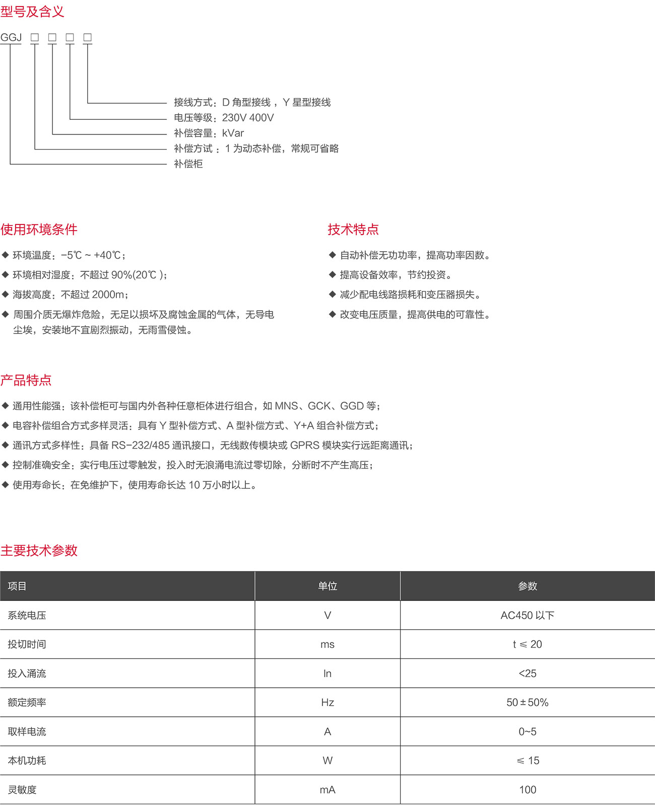 由于本装置能有效改善用电负荷的功率因数,降低线损,提高变压器的实际负载能力,具有显著的节能效果,同时在系统中采用特定的电抗器,还可以有效防止谐波放大、有效吸收大部分谐波电流,使谐电压总畸率限值及各次谐波电流含量限值符合国家标准,达到谐波治理的目的。而如果使用普通的接触器投切电 容器组,带来的将会是大的浪涌电流,慢的补偿时间、高的维护费用和短的使用寿命,因此,我们建议用户在以下场合,能优先考虑使用动态无功补偿装置如:工矿企业的变电所、生产车间及民用建筑等的低压电网中,特别适合负荷经常变化,无功功率不稳定的输配电系统。